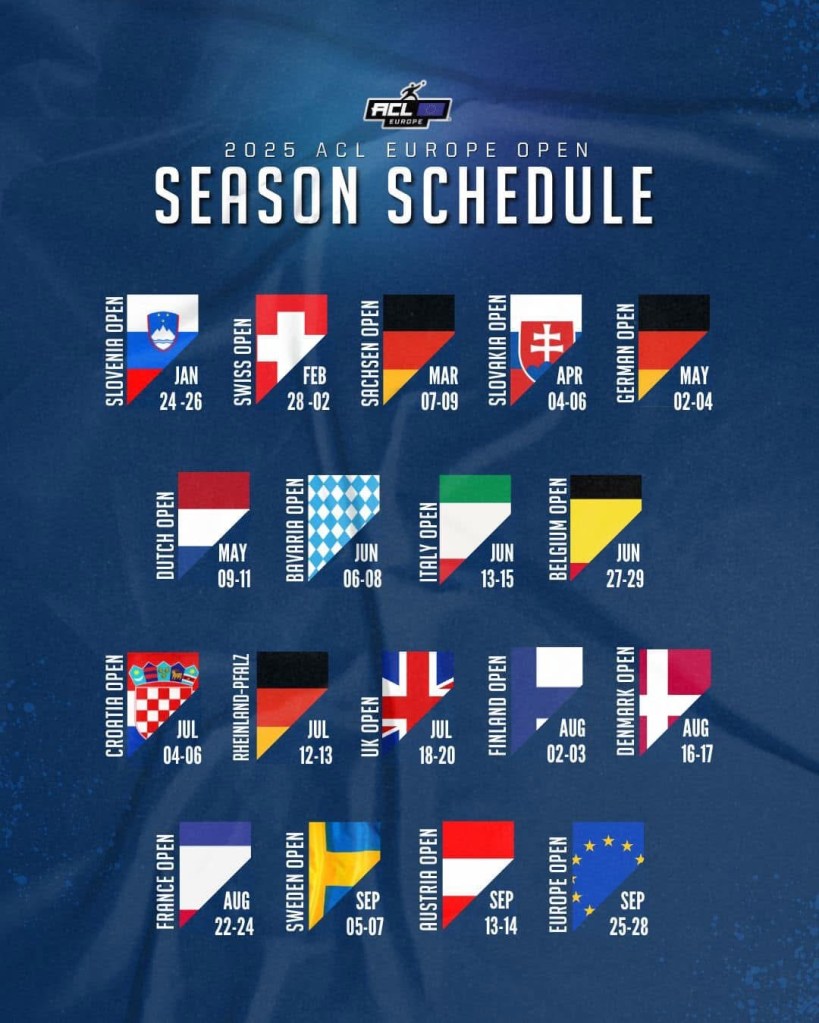 Az ACL (American Cornhole League) szervezésében megrendezésre kerülő Europe Open állomásai a következők lesznek 2025-ben:
